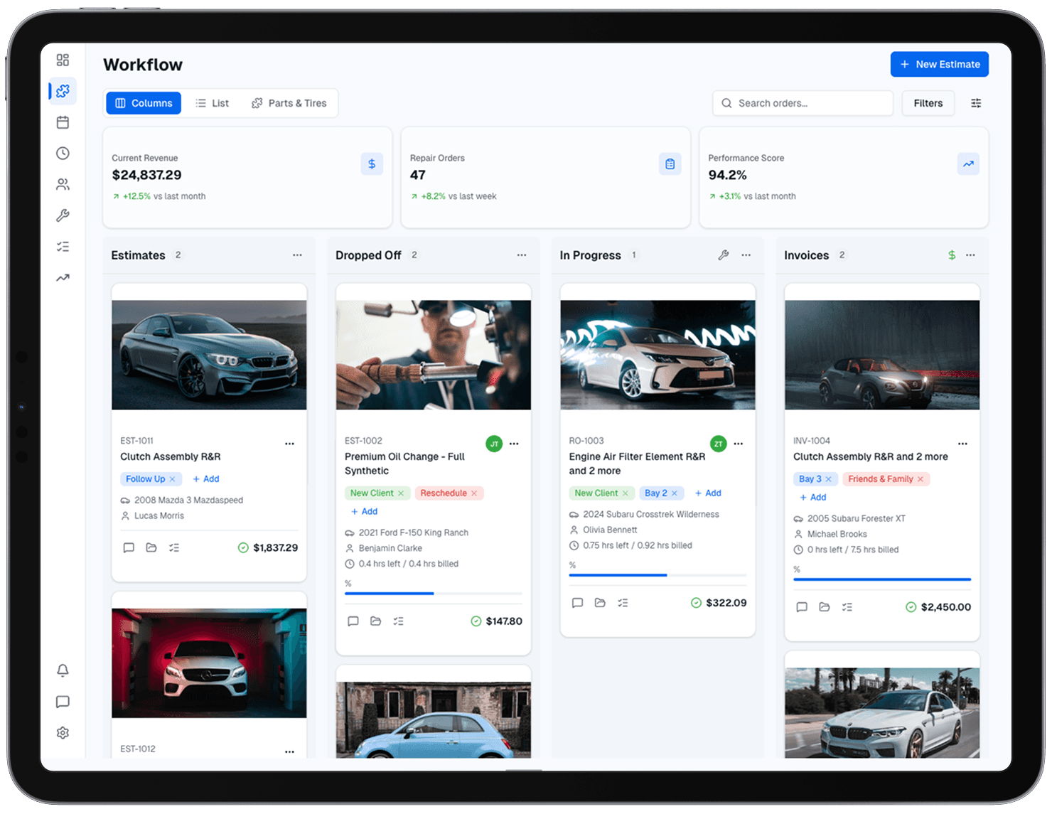 Workshop Management Tool is a comprehensive, cloud-based platform designed to modernize and streamline daily operations for automotive repair and service centers. It serves as an all-in-one hub that replaces fragmented legacy systems, helping shop owners manage everything from customer intake to final invoicing with ease. Mockup presented here is not the orignal product, it's rather an ideation about that topic based on one of the competitors.